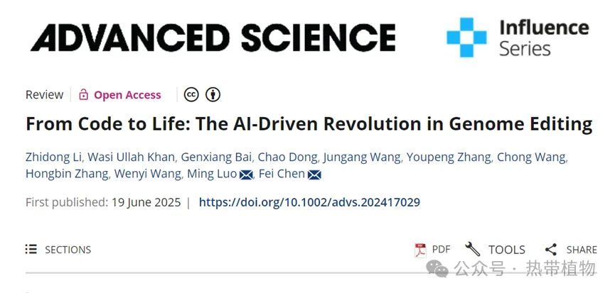 Advanced Science综述 | 从代码到生命:AI重塑基因编辑