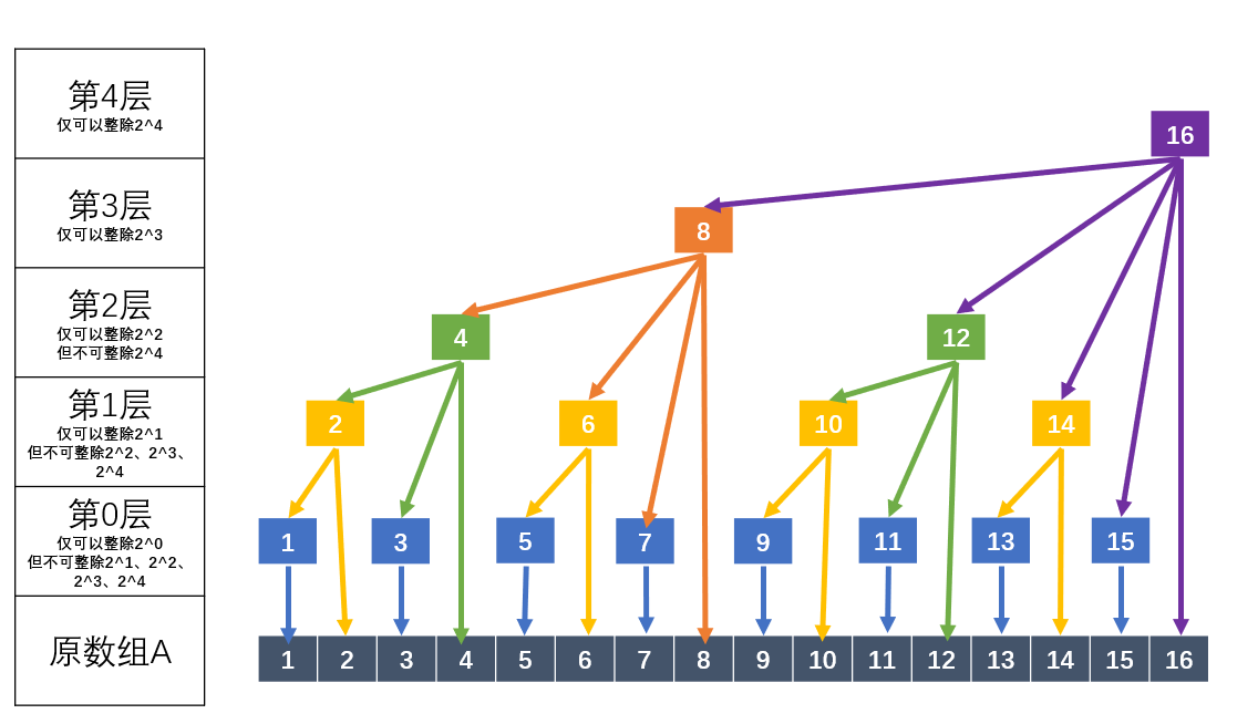 将 \(c[i]\) 中下标转为二进制后,定义 \(c[i]=a[i-lowbit(i)+1]+a[i-lowbit(i)+2]+...+a[i]\) 。