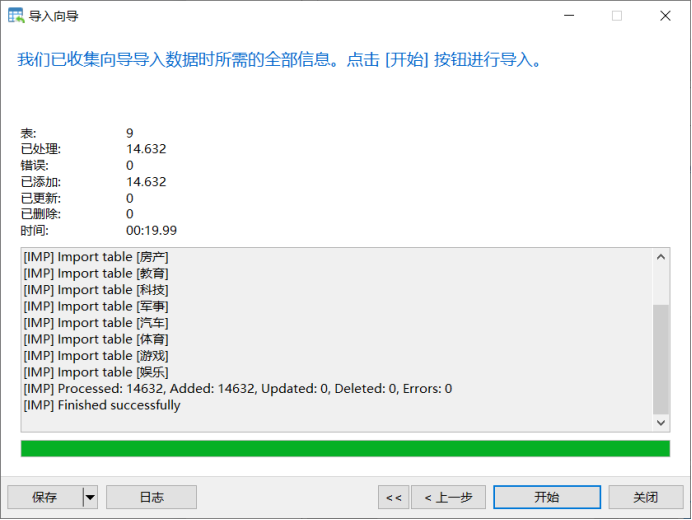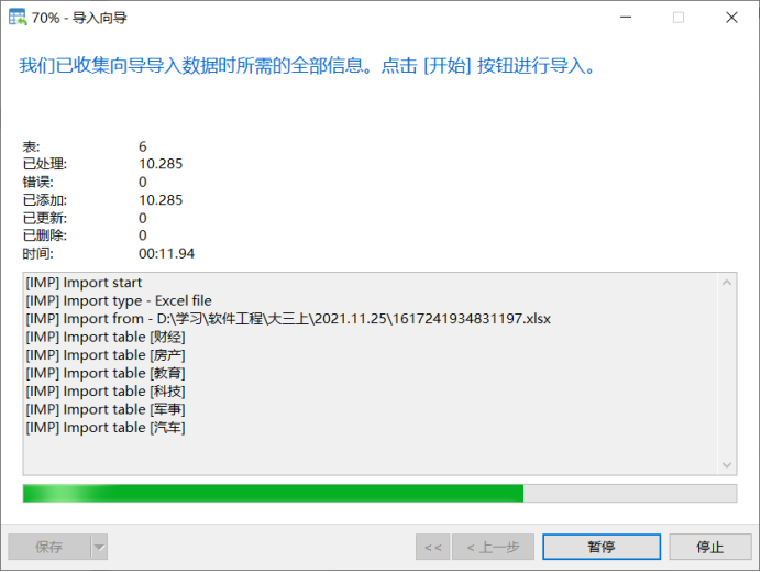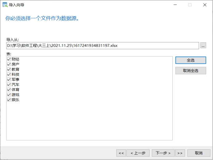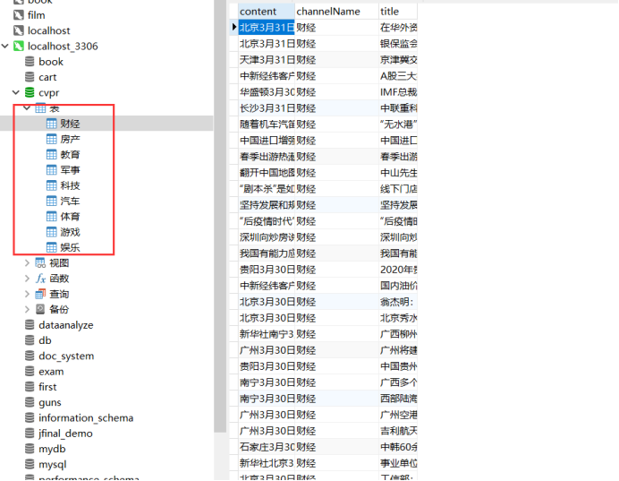 1、导入数据到数据库,将所有类别的新闻导入数据库中。