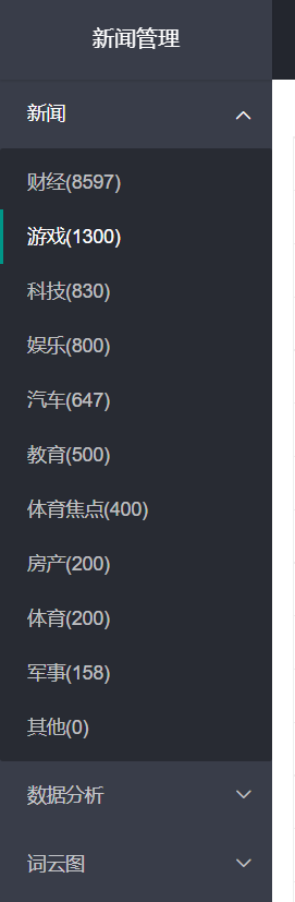 2、以树形目录形式展示新闻类别,每个树形节点代表新闻分类,括号中代表该类新闻的数量