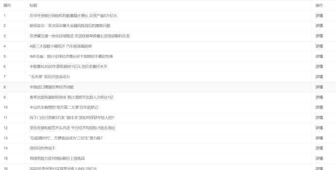 3、选择每个新闻,以列表形式显示新闻标题,点击新 闻标题,可以查看详细信息