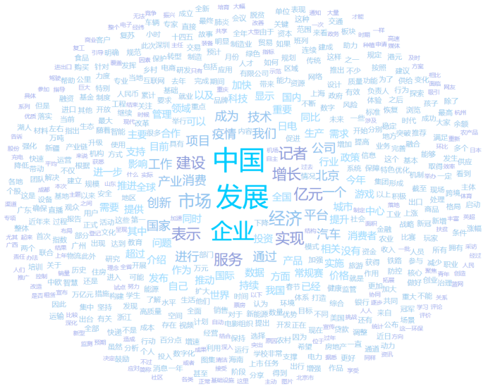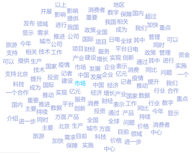 使用中文分词算法解析所有新闻正文,并统计每个词语出现的数量,并以词云图的方式展示,点击词云图中该词语,显示其数量