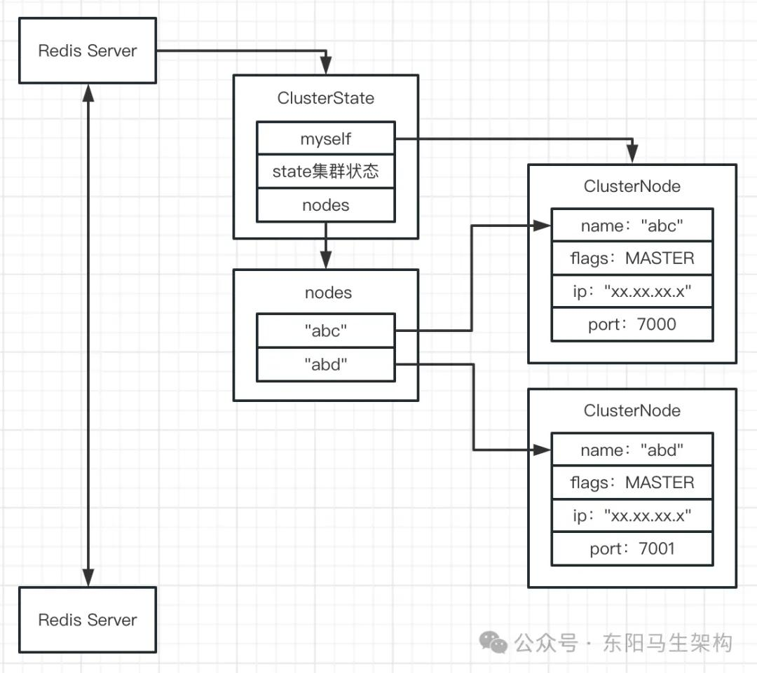 每个Redis Server都会有一个ClusterState内存数据结构,用来保存所有节点的信息。