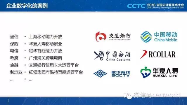 首先解释一下什么是数字化?数字化就是把人、事/物和商业联系起来,Garnter 提到未来的企业都是数字化的企业,IT将成为企业核心竞争力,甚至每个企业都是一个 IT 企业。类似的概念有金融科技(FinTech)、软件驱动企业、API经济,我觉得还是数字化描述得比较本质,大云物移/SMAC这些提法就技术化了。