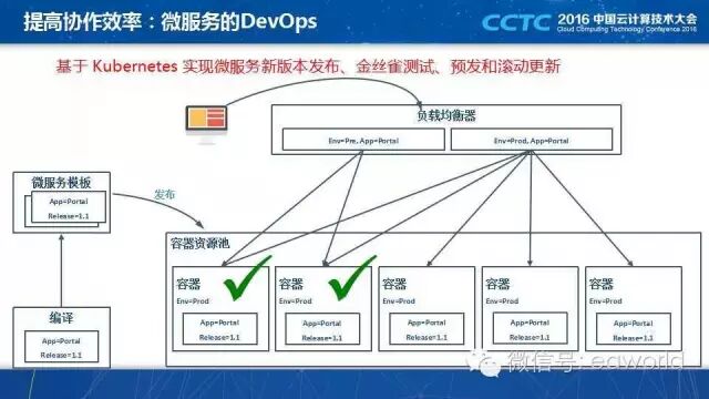 同时,我们的 DevOps 平台准备基于Kubernetes 实现微服务新版本发布、金丝雀测试、预发和滚动更新,这也是一个基于 OpenStack 比较复杂的工作,用 Kubernetes 的标签概念就比较简单。目前正在考虑通过数据服务解决服务发布的数据库蓝绿部署问题,帮助微服务做好发布、回滚、灰度发布。