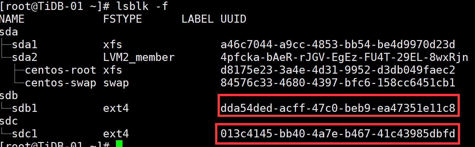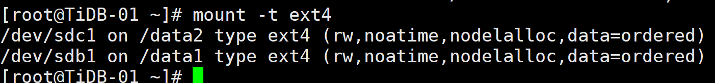 8.优化数据盘挂载参数,官方推荐 TiKV 部署目标机器的数据目录使用 EXT4 文件系统格式,所以我们需要格式化两块数据盘