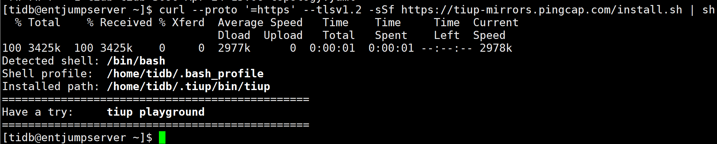 curl --proto '=https' --tlsv1.2 -sSf https://tiup-mirrors.pingcap.com/install.sh | sh
