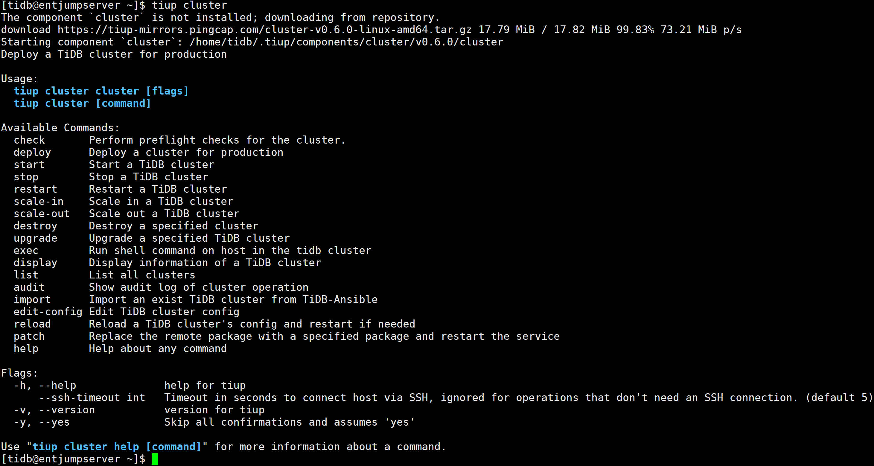 1.在中控机上安装TiUP组件,中控机可以是部署目标机器中的一台,我这里使用跳板机