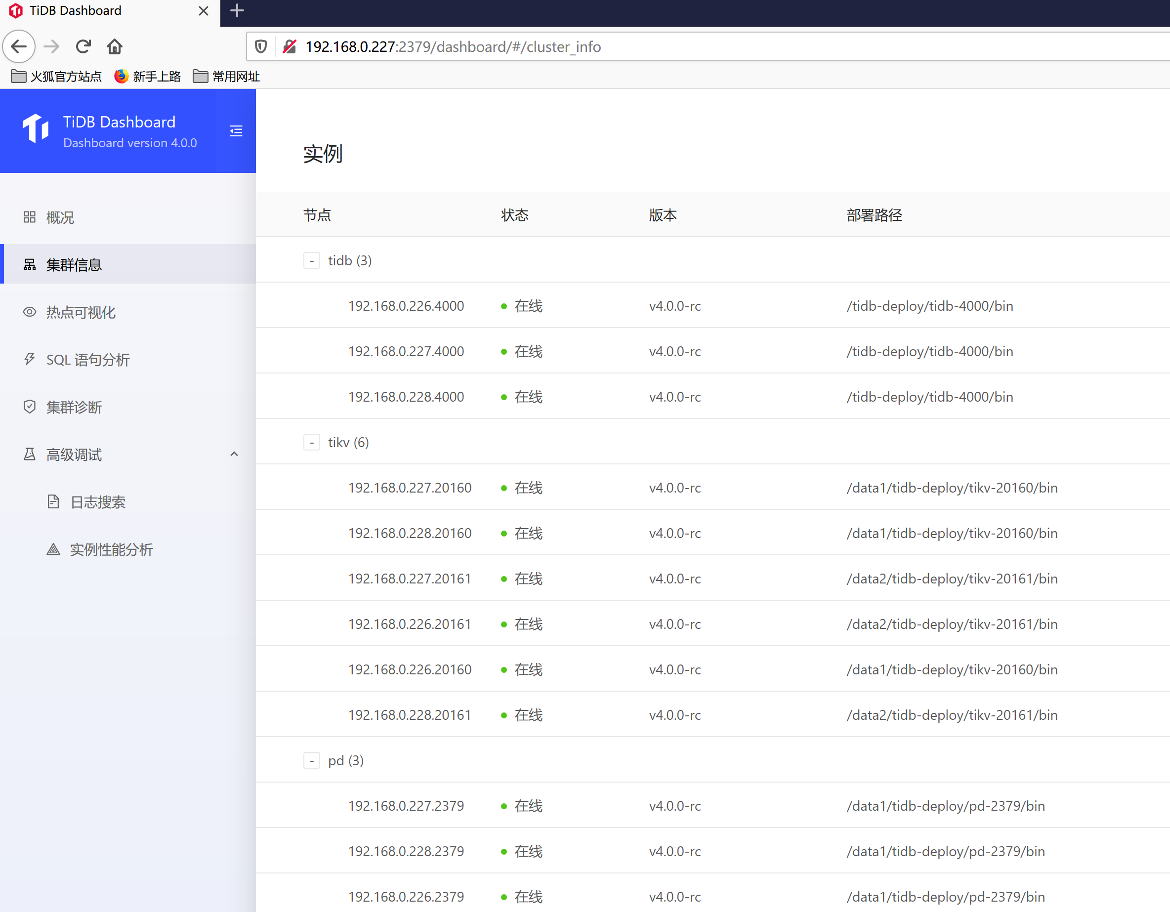 六、通过 TiDB Dashboard 和 Grafana 检查集群状态