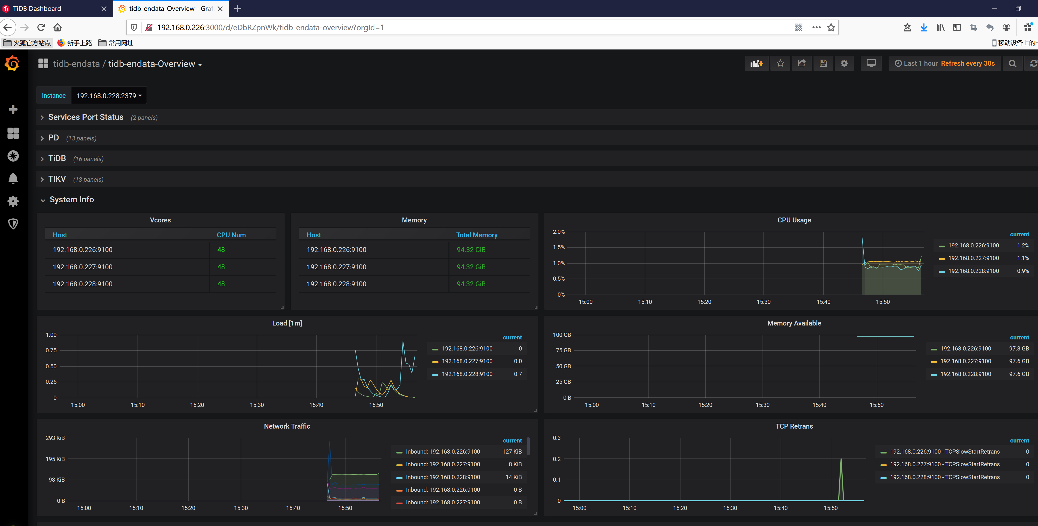 打开浏览器访问监控平台 http://192.168.0.226:3000,监控整个集群和新增节点的状态。