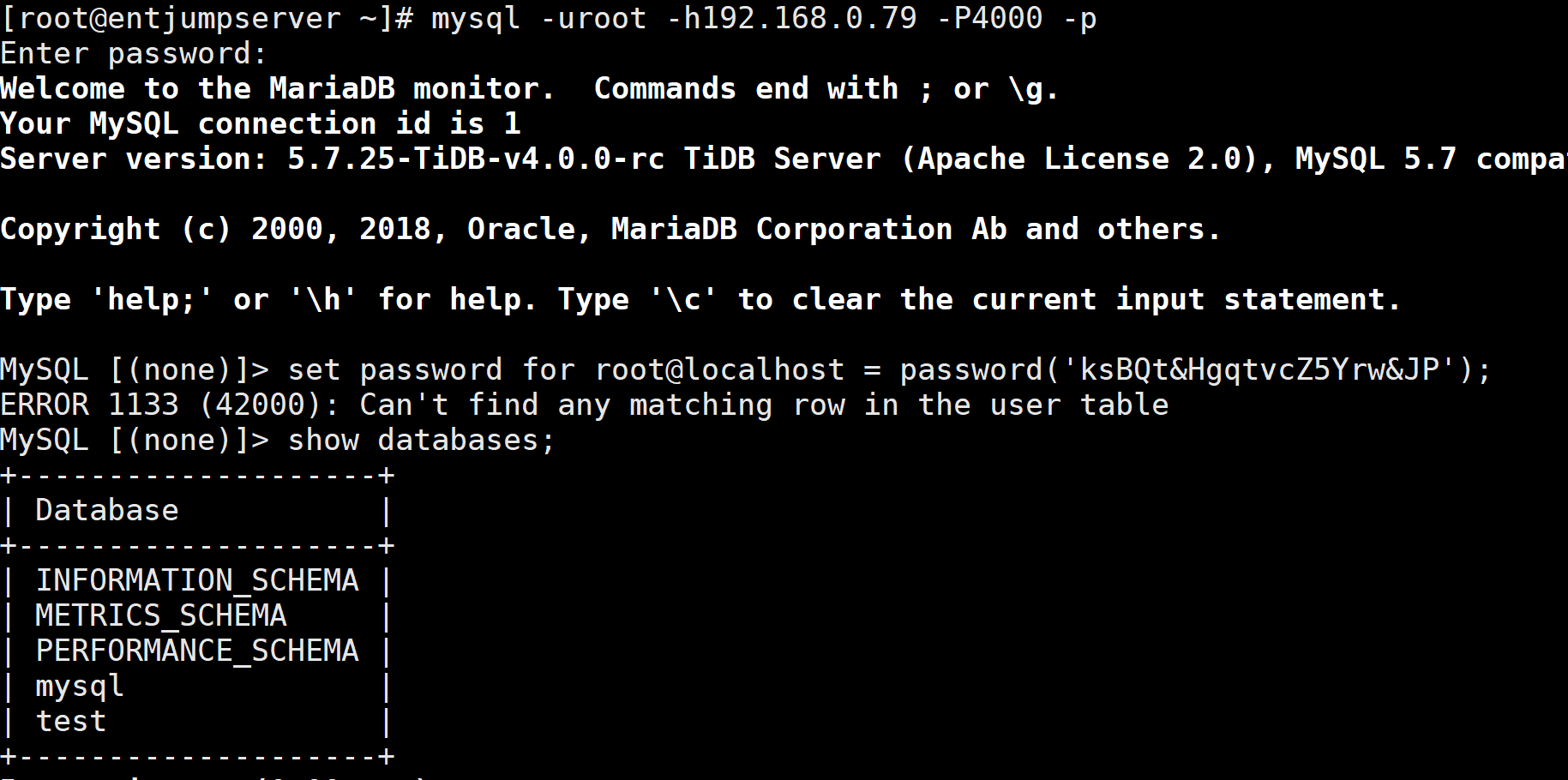 mysql -uroot -h192.168.0.79 -P4000 -p