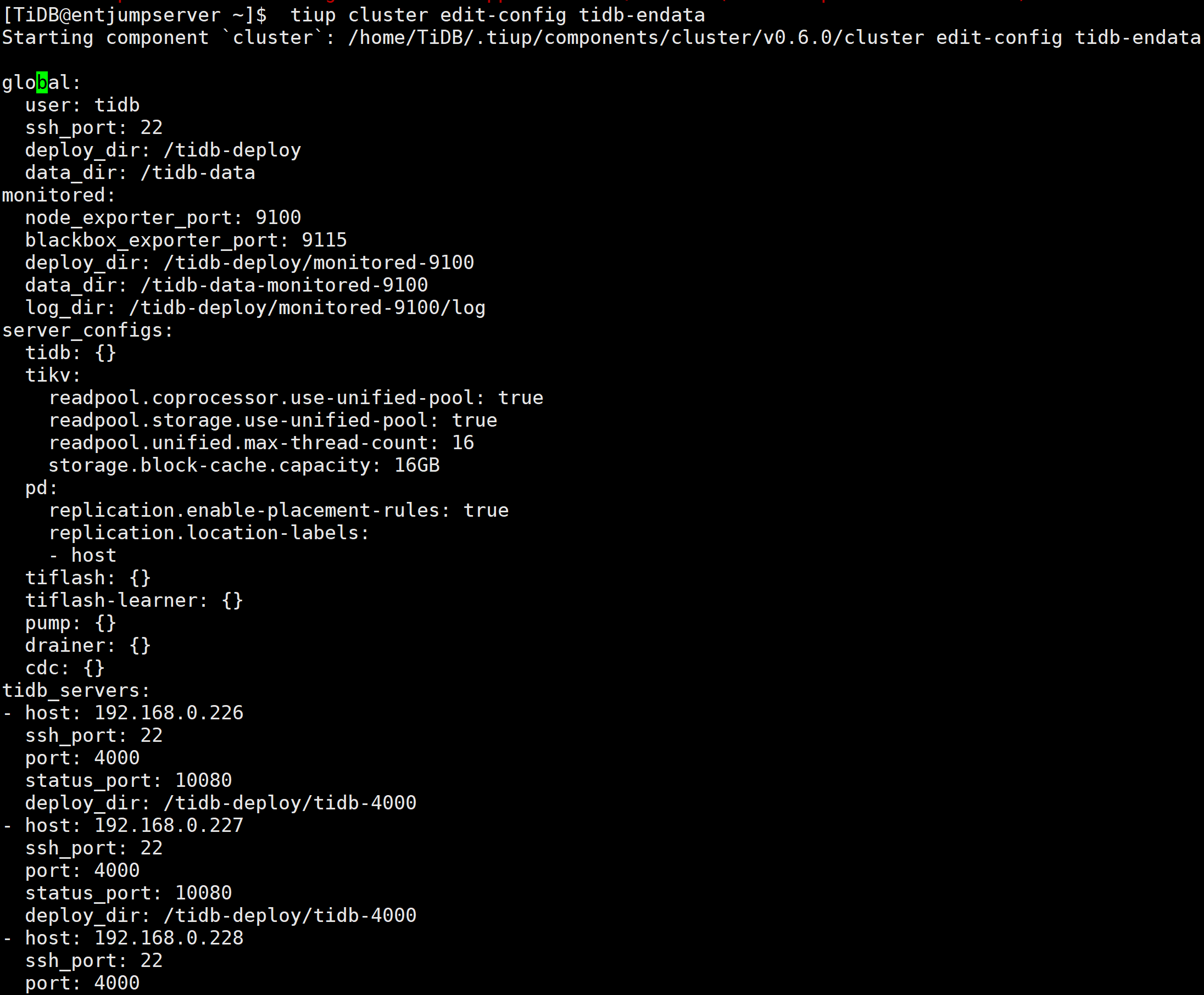 如果要添加一个 TiDB 节点,IP 地址为 192.168.0.229,可以按照如下步骤进行操作。