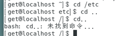cd ..命令 回退到上一级目录,最多回退到根位置(/)