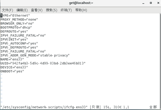 vi /etc/sysconfig/network-scripts/ifcfg-ens33 (修改网卡信息)