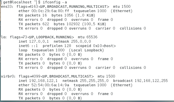 ifconfig ens33 (查看某一个网卡信息)