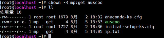 chown mp:root auscoo 修改文件auscoo 属组为root,属主为mp
