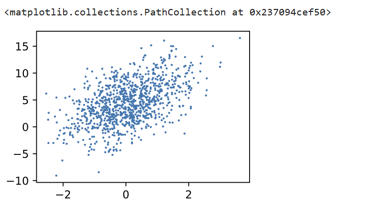 d2l.plt.scatter(features[:, (1)].detach().numpy(), labels.detach().numpy(), 1)