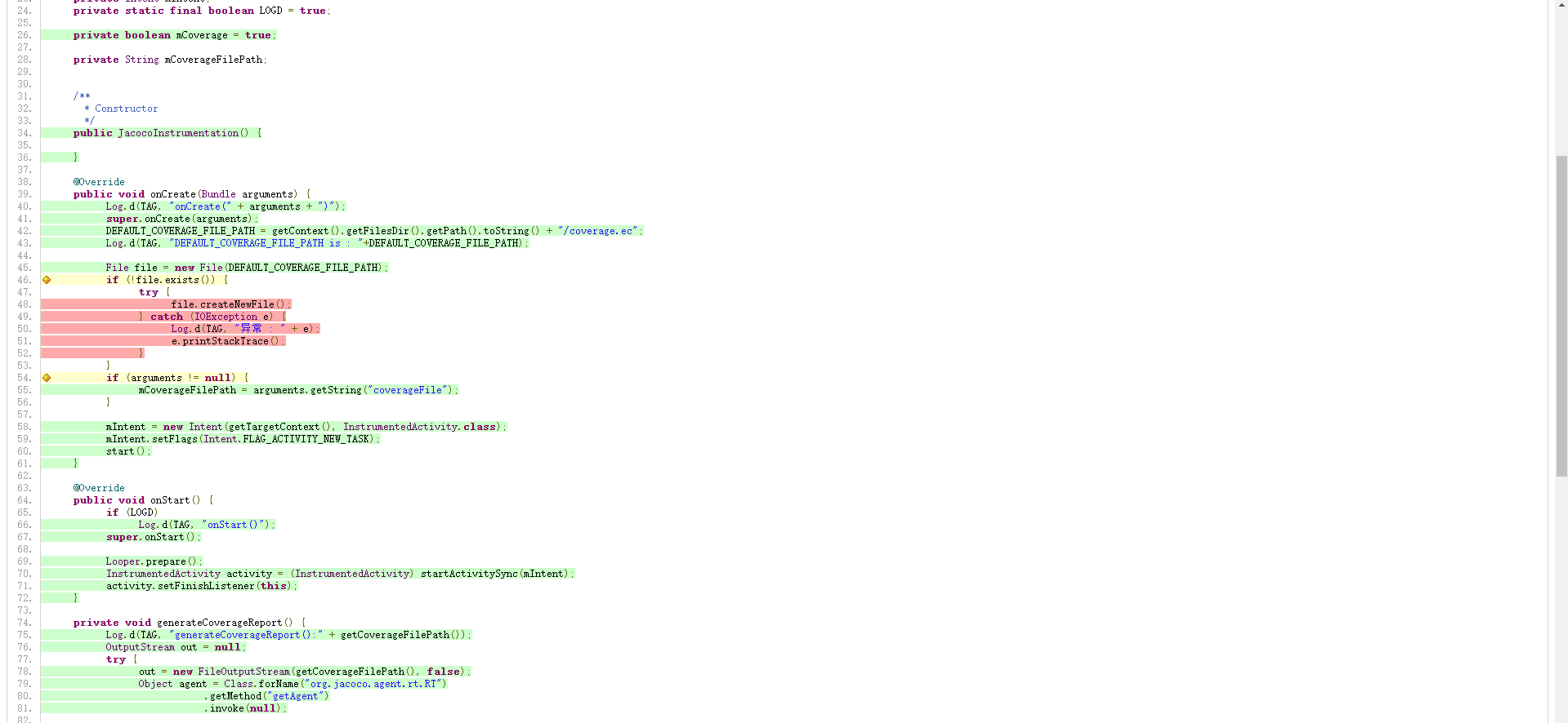 - 通过 adb shell am instrument 包名/包名.test.JacocoInstrumentation 启动 app;