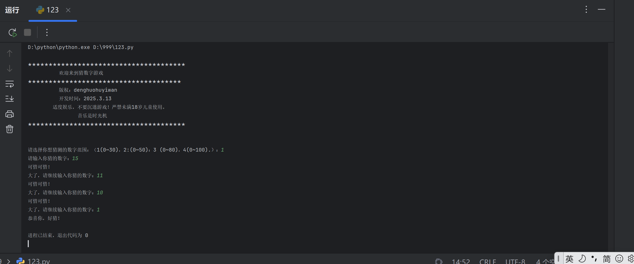 学号 2024-2025-2 《Python程序设计》实验一报告