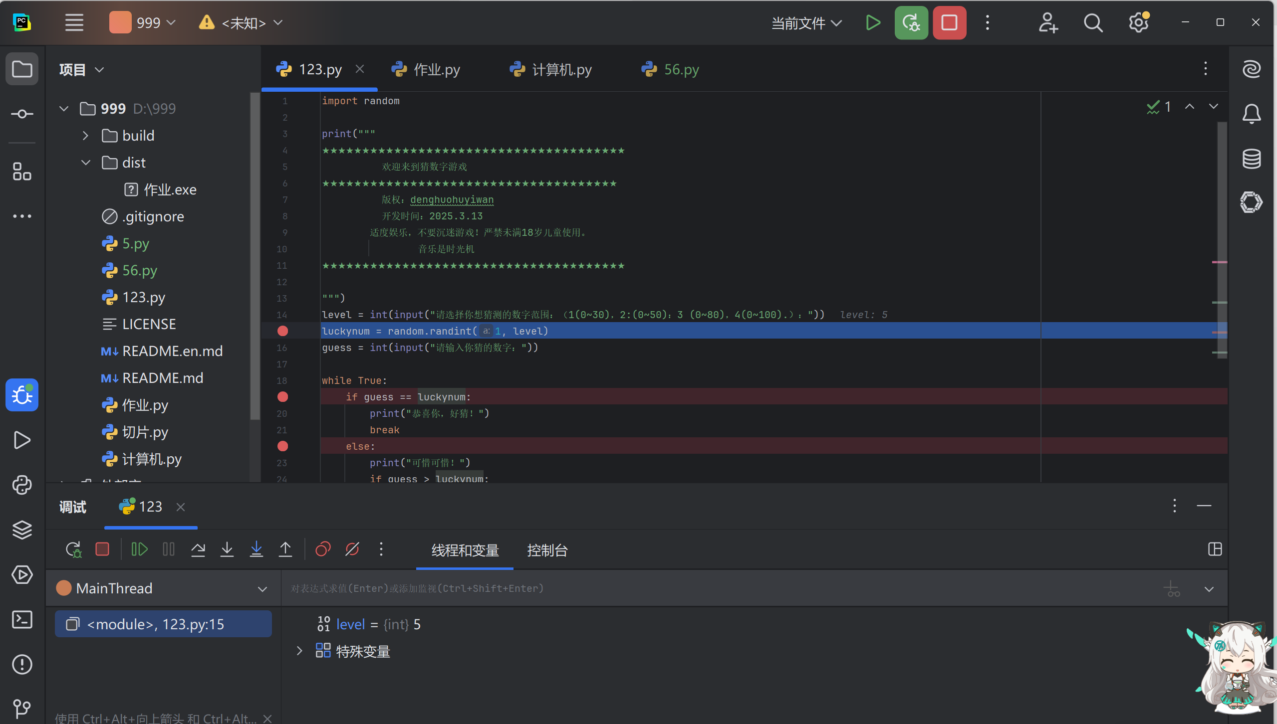 luckynum = random.randint(1, level)在自己选择的一个范围内生成一个随机数;