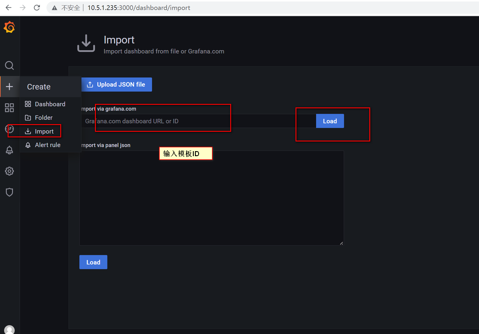 进入grafana:http://10.5.1.235:3000/,默认密码adminadmin