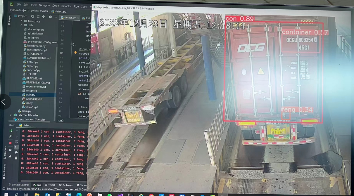 这样就可以实时检测RTSP流中的集装箱对象了