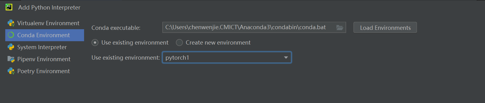 配置成conda刚刚创建的虚拟环境pytorch1
