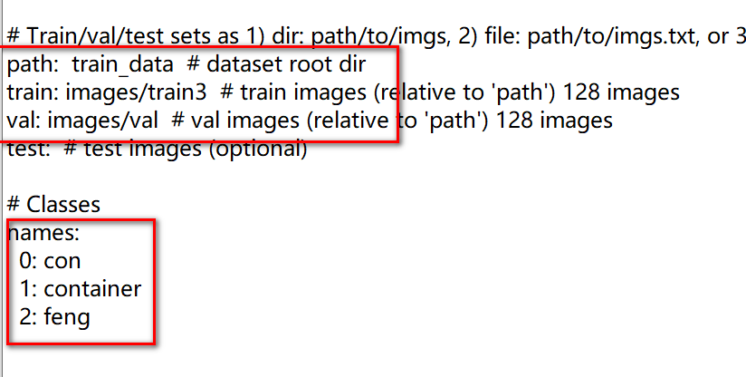 修改coco128.yaml中的配置项目,按自己要检测的对象修改