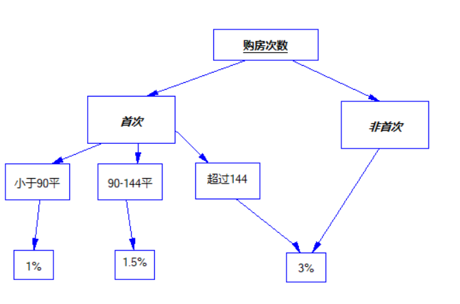 if(n==1&&s<=90) qtax=assess*0.01*10000;//首次且小于90平 if(n==1&&s>90&&s<=144) qtax=assess*0.015*10000;//首次且在90-144平 if(n>1||s>144) qtax=assess*0.03*10000;//非首次或者首次但大于144平