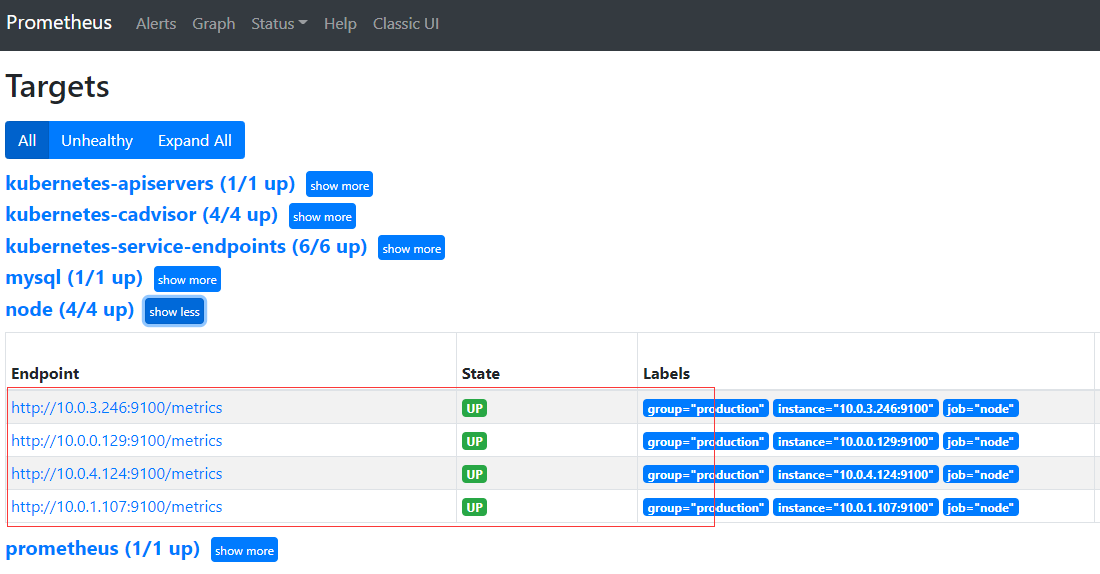 apiVersion: v1 kind: Service metadata: name: xd-prometheus-center labels: app: xd-prometheus-center spec: type: LoadBalancer selector: app: xd-prometheus-center ports: - protocol: TCP port: 80 targetPort: 9090