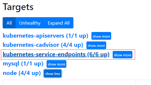 然后重启prometheus pod后,web ui的target处会多出kubernetes-apiservers的target: 表明api server监控成功。