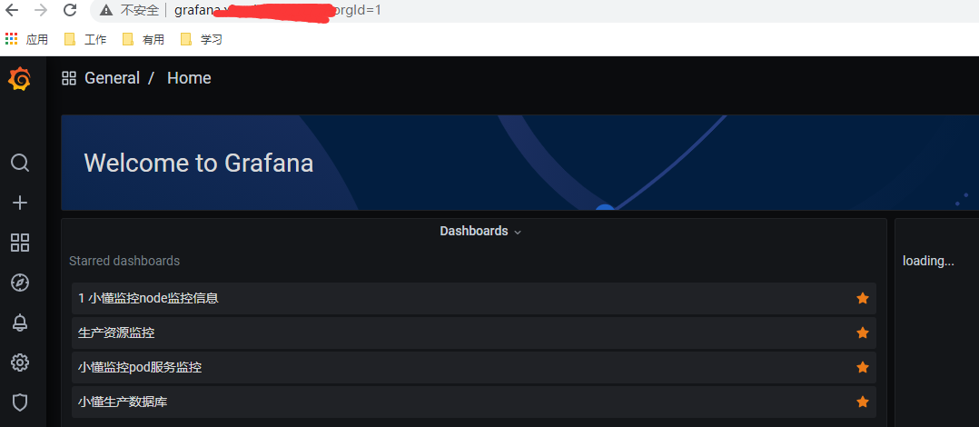 需要安装grafana容器来图形化界面#其中grafana可以去官网下载图表模板不过需要修改才能用