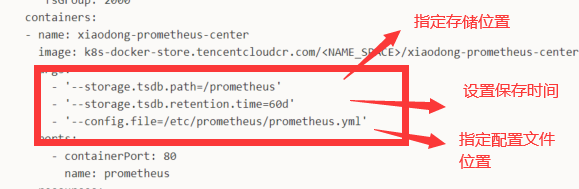 如果想设置Prometheus的数据存储时间(默认是15d),现在想改成60天 需要在deployment.yml的添加以下配置