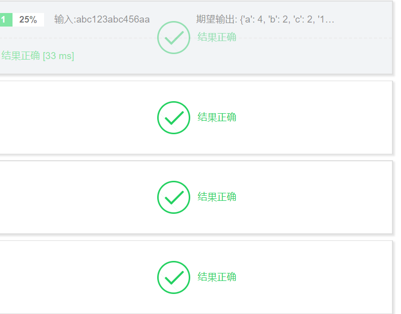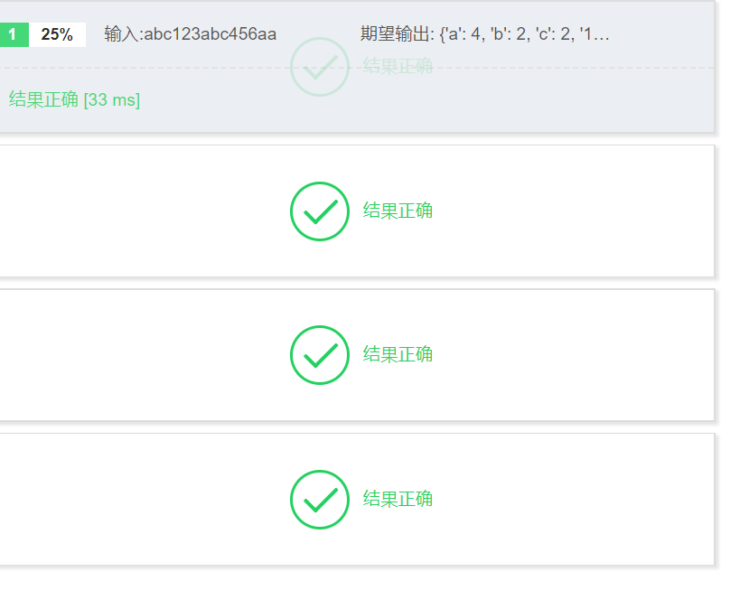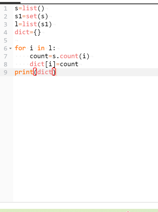 2)输入格式是一个以回车结束的字符串,例如输入abc1ab,输出{'a': 2, 'b': 2, 'c': 1, '1': 1}。