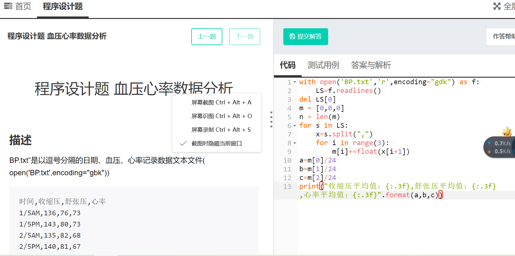 BP.txt”是以逗号分隔的日期、血压、心率记录数据文本文件( open('BP.txt',encoding="gbk"))