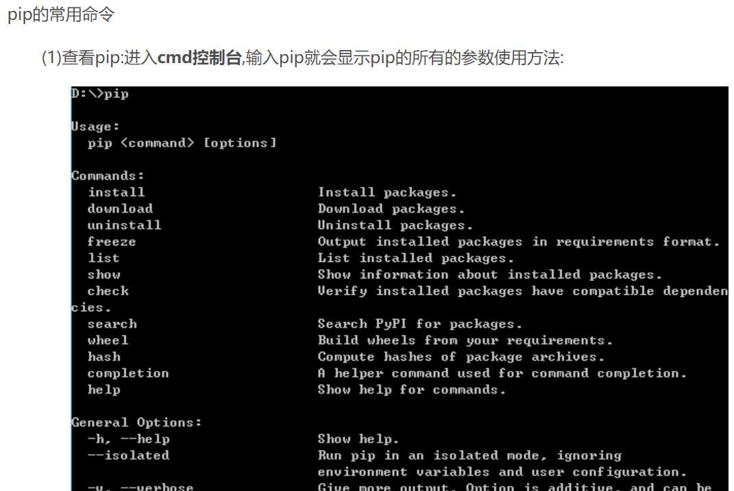 - 查阅资料进一步了解pip 安装命令的参数 运用相关命令查询本地计算机已经安装的包;