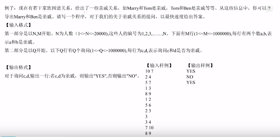 - 查找。查找两个元素所在的集合,即找祖宗。