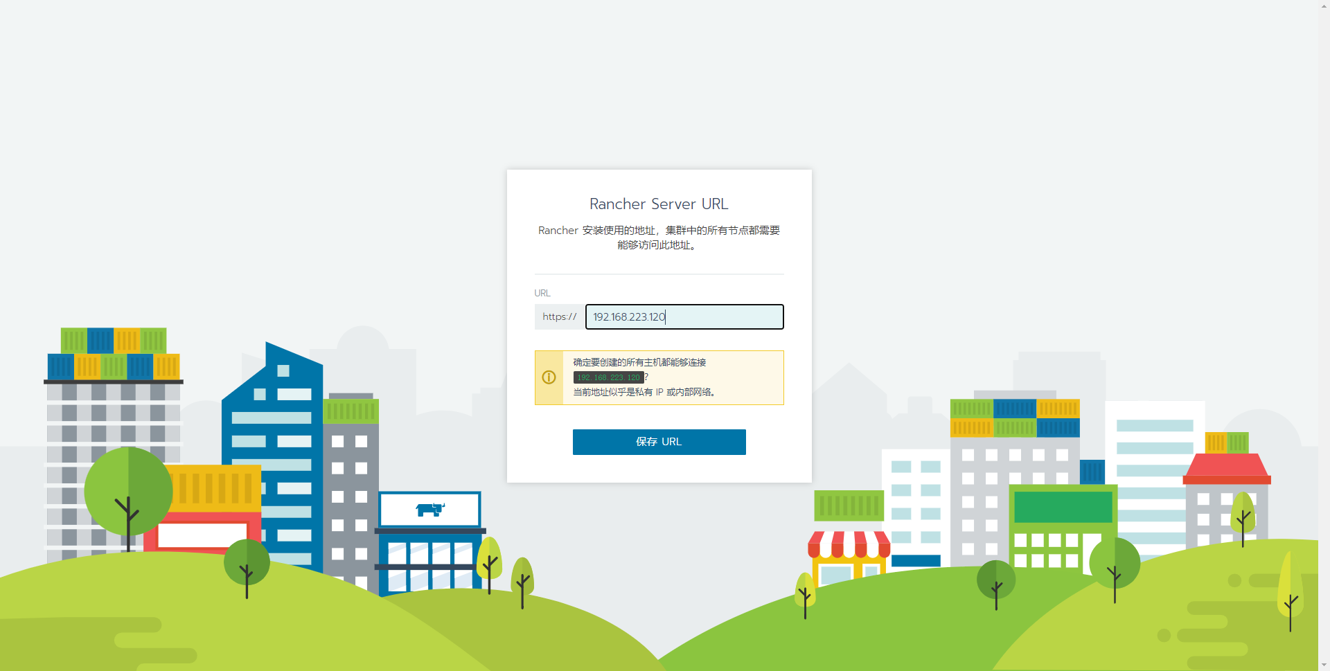 设置登录密码进入下一步并设置rancher server url【确保集群的每个节点都能访问该地址】