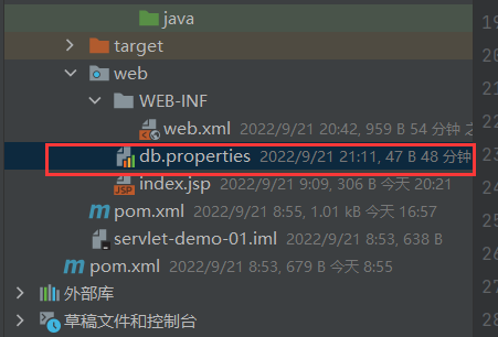 假设我们的【servlet】web工程中有一个数据库的配置文件:db.properties,在这个数据库中已经有了一些参数,而我们在web工程中希望读取这个配置文件中的有关信息: