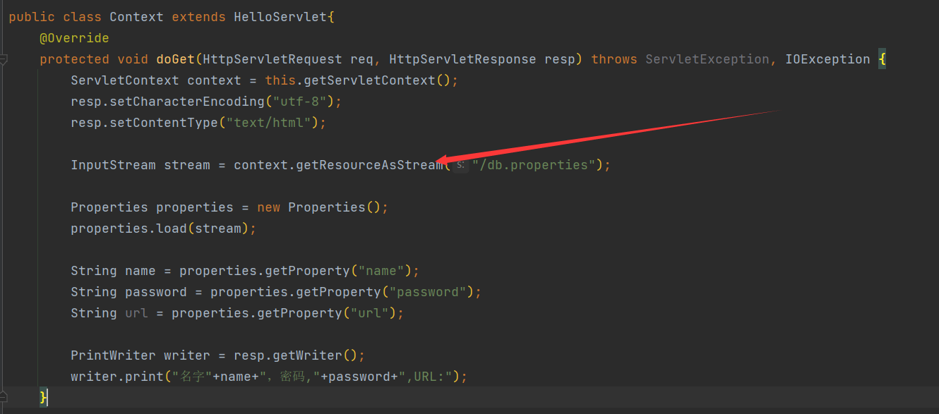 先来看看ServletContext中的getResourceAsStream()方法,这个方法返回InputStream对象。