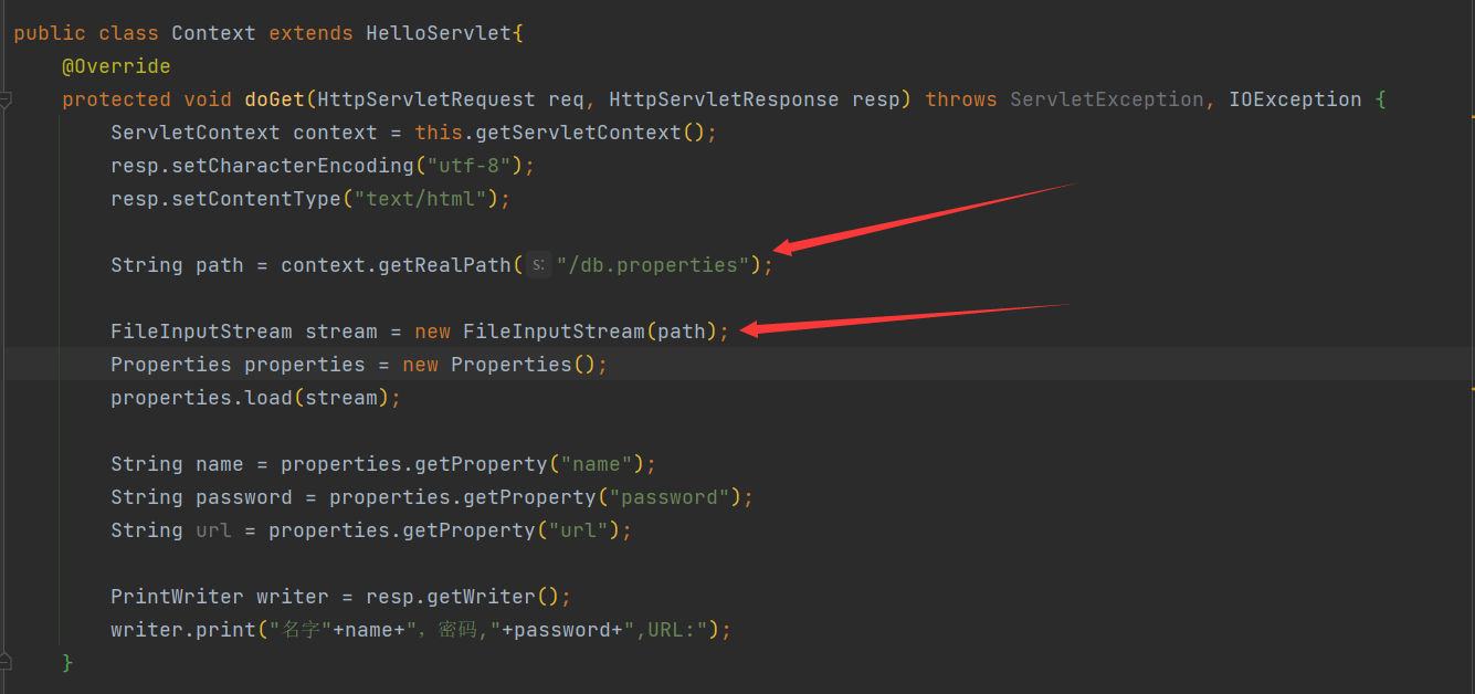 最后在浏览器中访问这个Servlet,那么在浏览器就能看到db.properties中我们配置的信息: