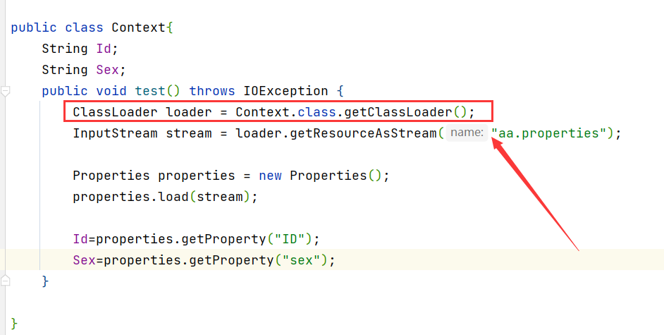 在Context类中,我们需要通过类加载器来获取输入流来读取这个文件: