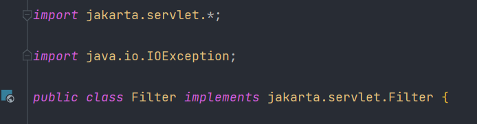 doFilter(ServletRequest request,ServletResponse response),该方法可以将当前的请求和响应传递到过滤链上的下一个资源,可能是下一个过滤器,也可能是目标资源。