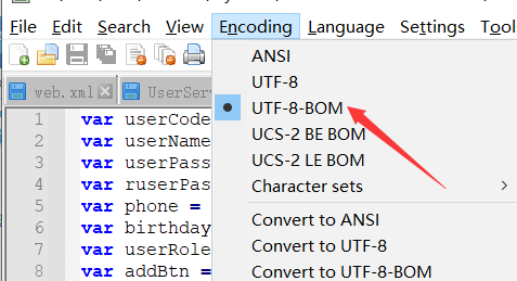 smbms项目运行后,部分中文在浏览器中显示乱码,该乱码部分是在相应js文件中的