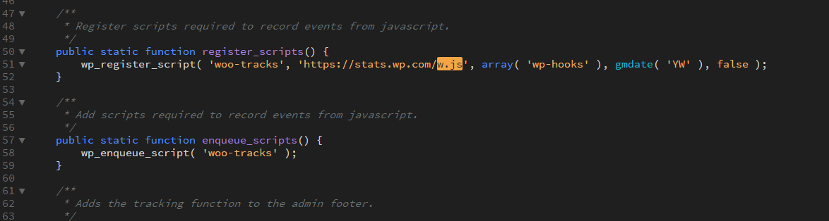 这里注册了一个woo-tracks的js,这个js是远程调用的stats.wp.com