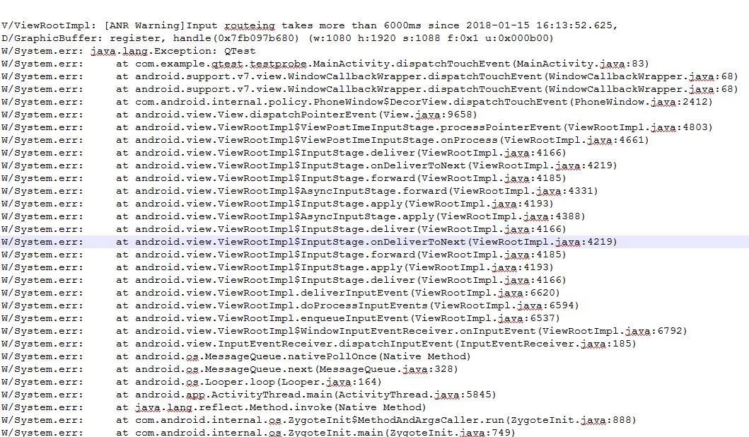 在Activity中重写dispatchTouchEvent和dispatchKeyEvent,模拟耗时操作,弹出ANR告警,但BlockCanary没有任何反应,查看调用栈。