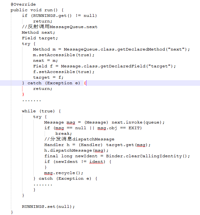 SafeLooper是个比较新奇的思路,本身就是一个堵塞的消息,在自己内部进行消息的处理,通过反射接管主线程Looper的功能。