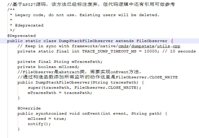 有ANR的流程就可以知道/data/anr文件夹的变化代表着ANR的发生,AMS在dumpStackTrace方法中给了我们一些提示。