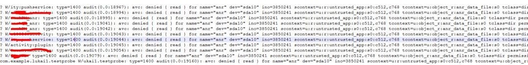 可以看到很多应用都尝试监听ANR文件,但是都被权限拒绝,属于不受信任应用。