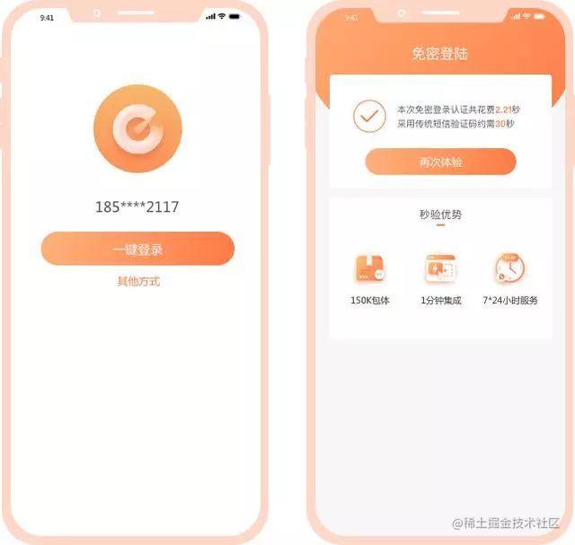 一键登录的实现原理就是通过运营商特有的网关认证能力,验证待校验手机号码和应用所在的手机号码一致性,从而达到和短信验证码登录一样验证用户身份的作用。这种方式可以直接由运营商帮助App取号验证,用户点击一键登录,既不需要输入账号密码,也不需要等待获取短信验证码,全程不超过3秒。